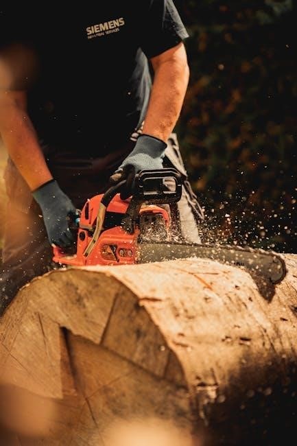 This manual details chainsaw operation, safety, maintenance, and troubleshooting, ensuring users understand proper techniques for effective and hazard-free timber cutting.